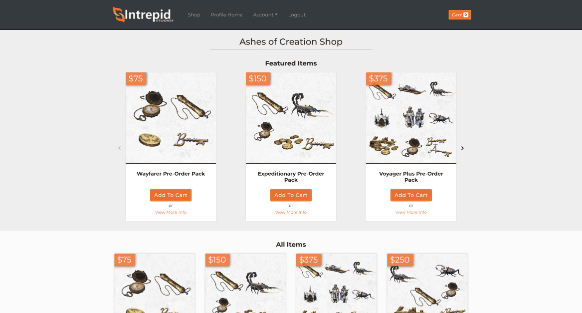 A web platform and an online shop for the game studio working on the MMORPG Ashes of Creation.